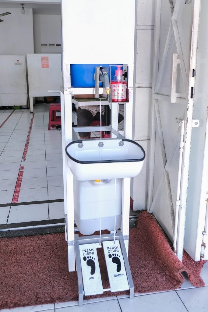 Kini di Outlet Vien's Pusat sudah tersedia wastafel injak yang bekerja tanpa sentuhan tangan, lho. Untuk mencegah penularan Covid-19, pengunjung wajib untuk mencuci tangan sebelum dan sesudah mengunjungi outlet Vien's.