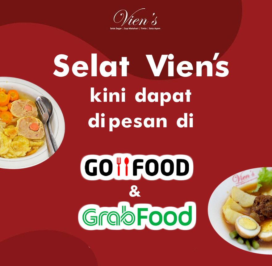 Pingin makan Vien's tapi nggak bisa ke luar rumah? Tenang! Vien's juga tersedia di Gofood dan Grabfood. Tinggal klik aplikasi Gojek atau Grab, bayar, langsung diantar.